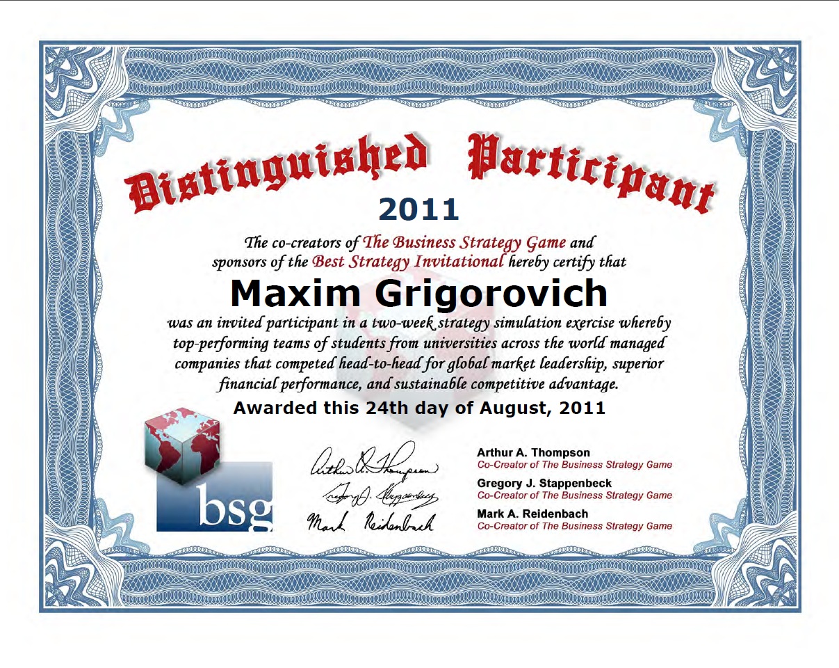 Business Strategy Contest Certificate Published December 26, 2011 at 1207 × 960 in Honors & Awards Like Loading...